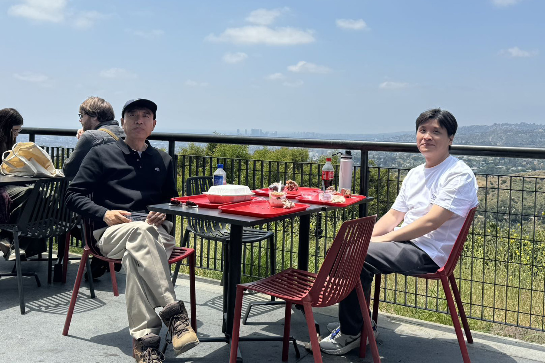 一会儿功夫,登山队伍就来到山顶上的格林菲斯天文台。这里坐落着世界一流的太空博物馆,大家兴致勃勃地开始探索宇宙的奥秘, 並俯瞰洛杉矶的美景。借助这里的望远镜,你可以看到洛杉矶、圣莫尼卡、好莱坞标志、圣盖博山脉和太平洋壮观的景色。会员们在山顶天文台集合,一起来到咖啡厅享用午餐,休闲小憩,最后全体参加者一起合影留念,完满地完成了这次登山活动。本次活动得到了会员的一致好评, 既联络了感情又锻练了身体,希望有机会再来参与这样今人难忘的活动。