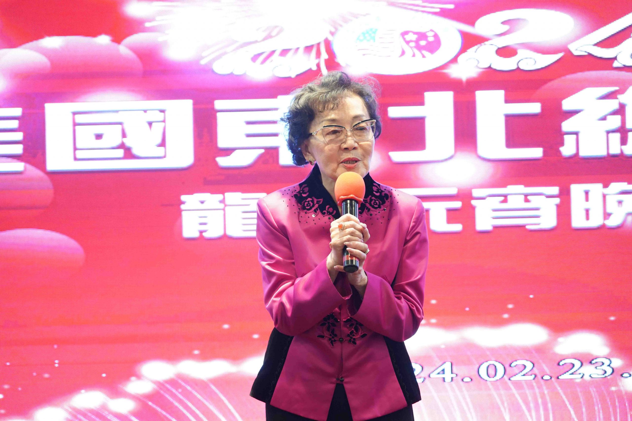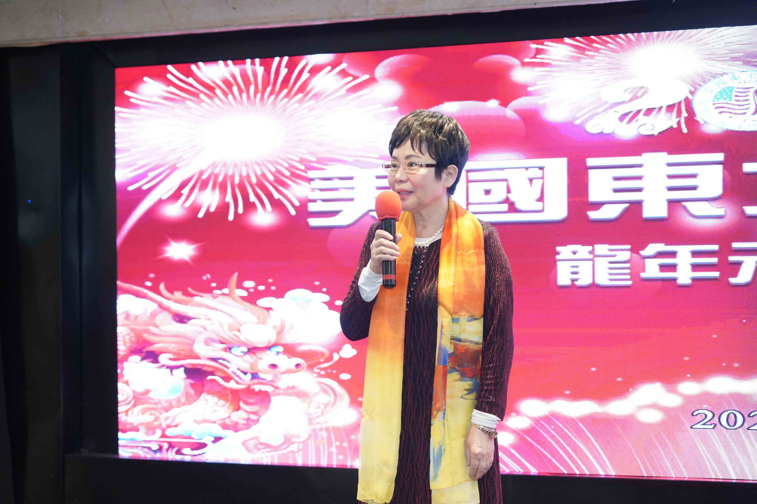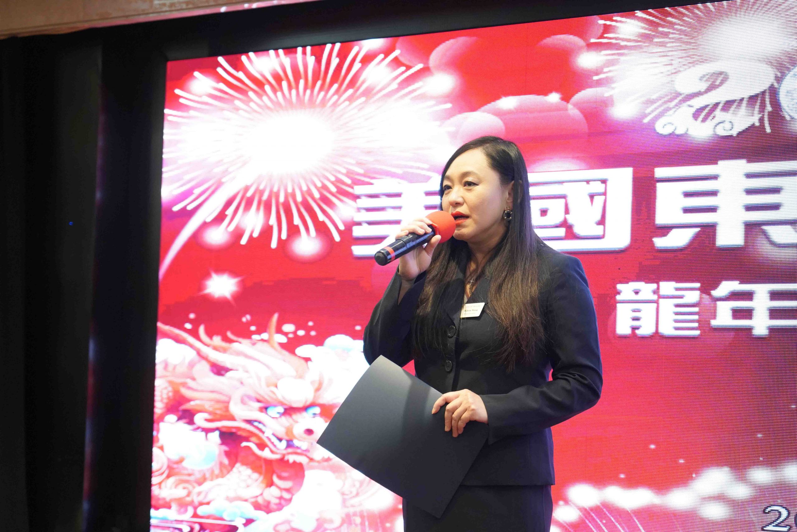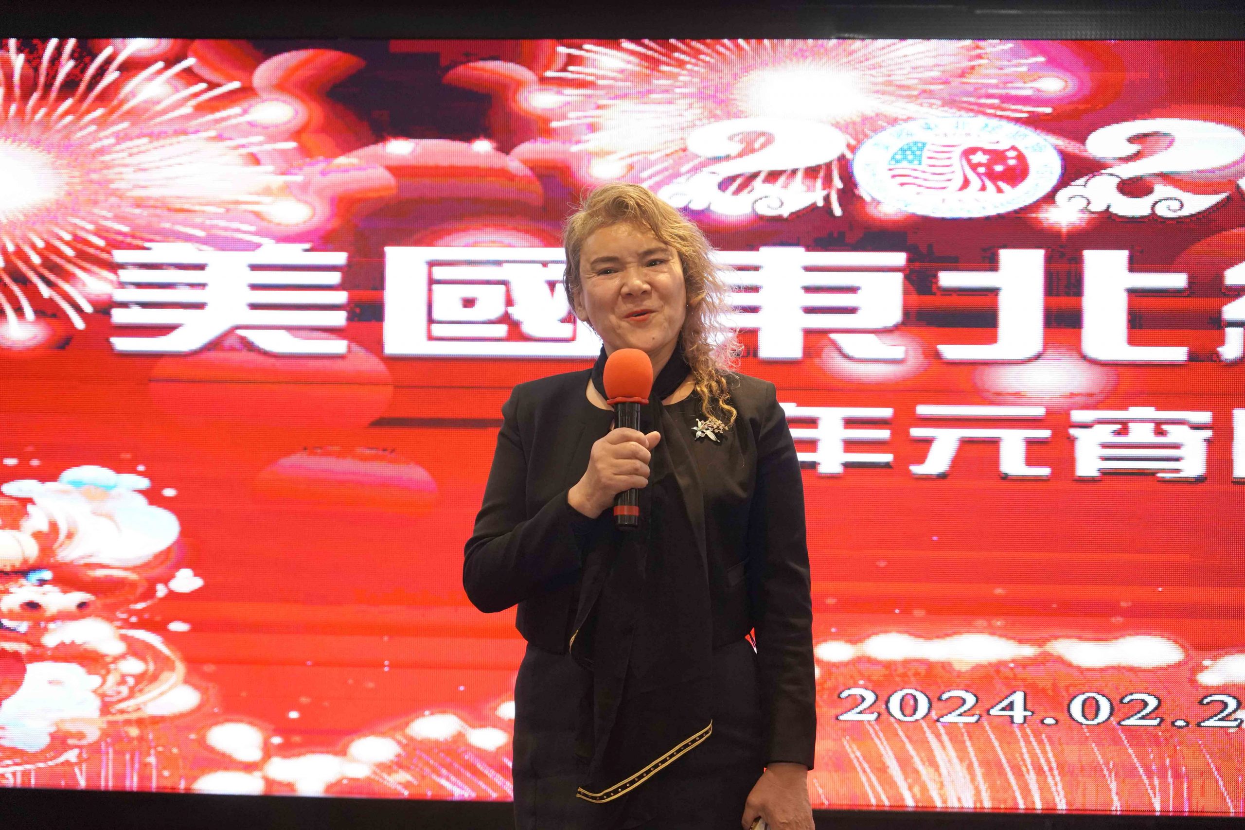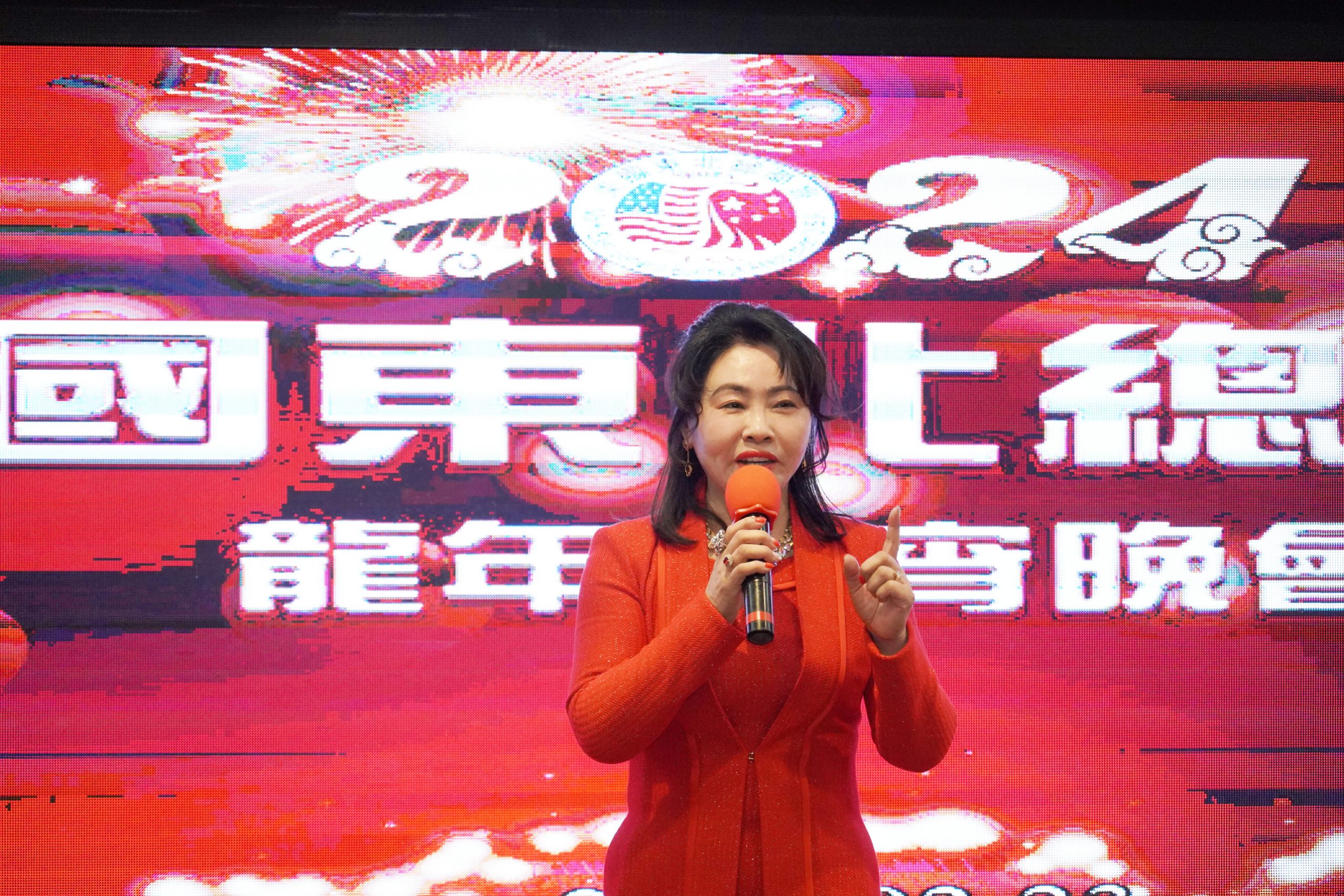 美国东北总商会会长路霞首先登台致词,她代表总商会全体会员欢迎各位嘉宾光临,並送上新春的祝福。